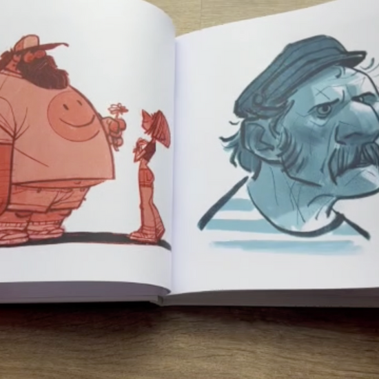 Libro de arte con diseños originales de Isaac Jadraque, centrado en diseños de personajes.